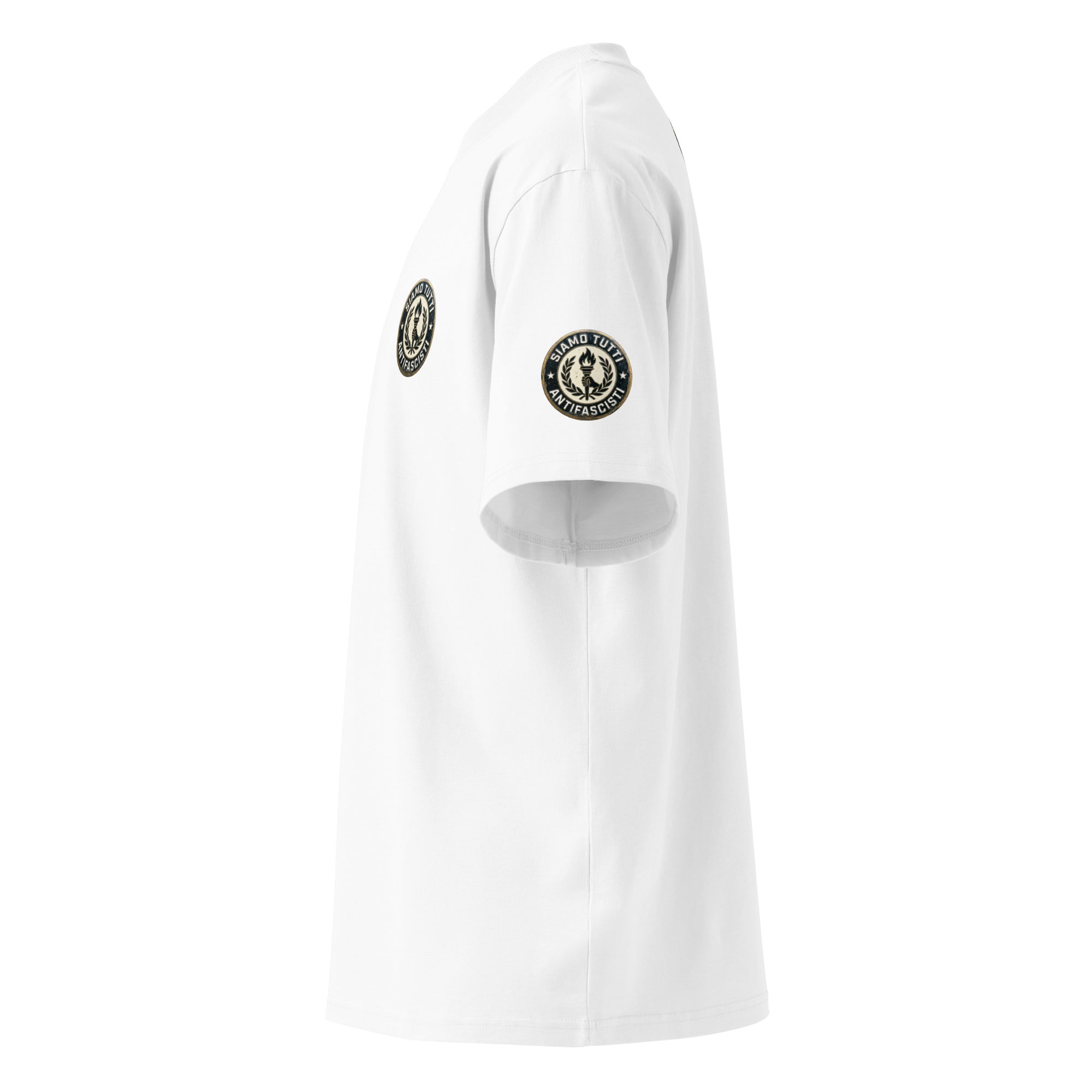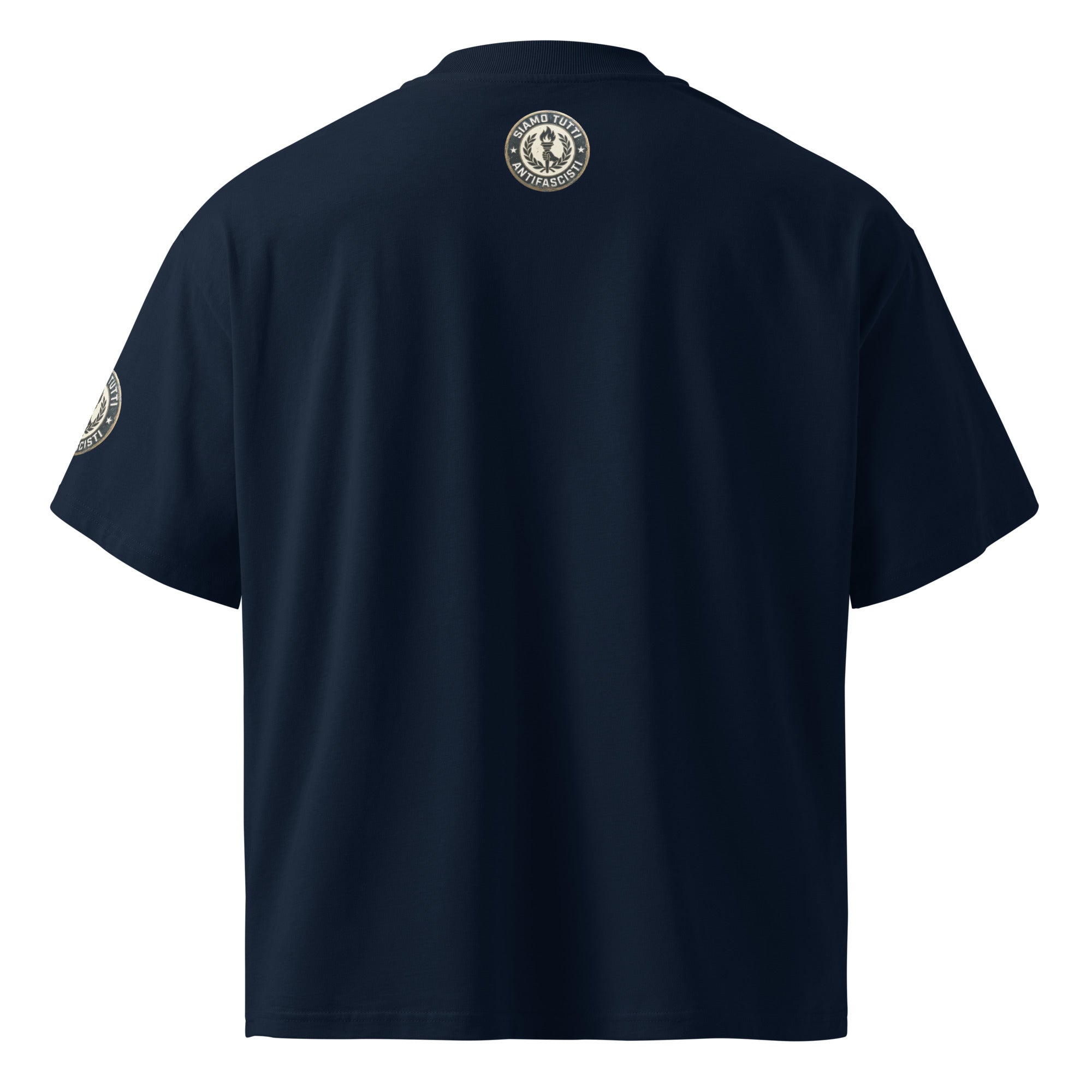 Oversize Antifaschismus T‑Shirt – „Siamo Tutti Antifascisti“ Fackel‑Emblem & Lorbeerkranz – Unisex Statement Shirt