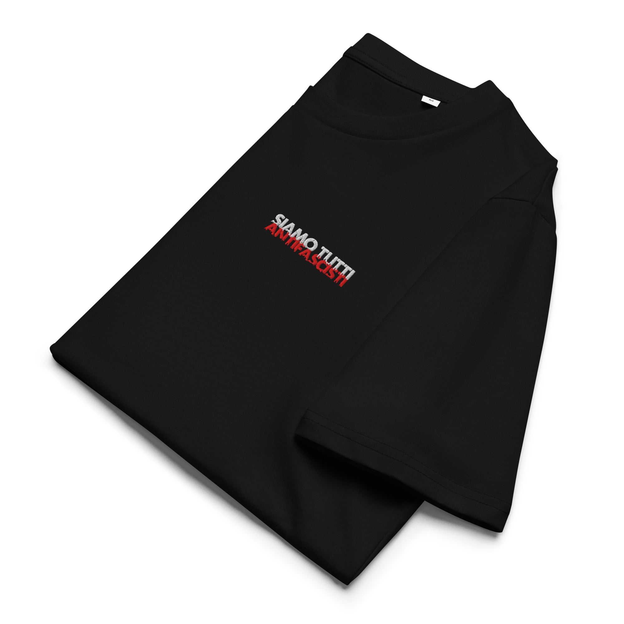 Gesticktes Unisex Bio T-Shirt „Siamo tutti antifascisti“ Distressed Look